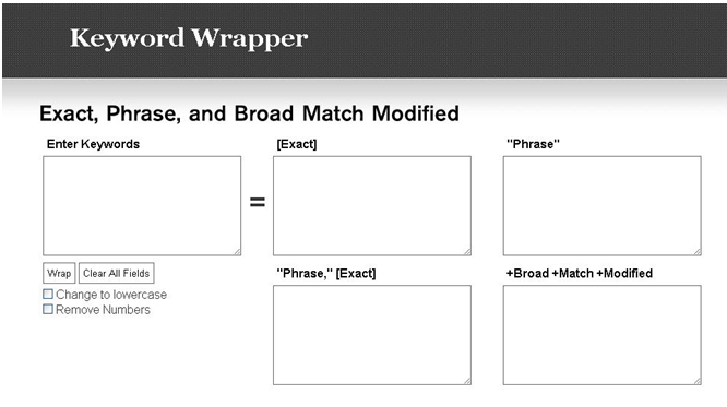 Keyword Wrapper is a free SEM tool that helps create keyword sets in all match types.