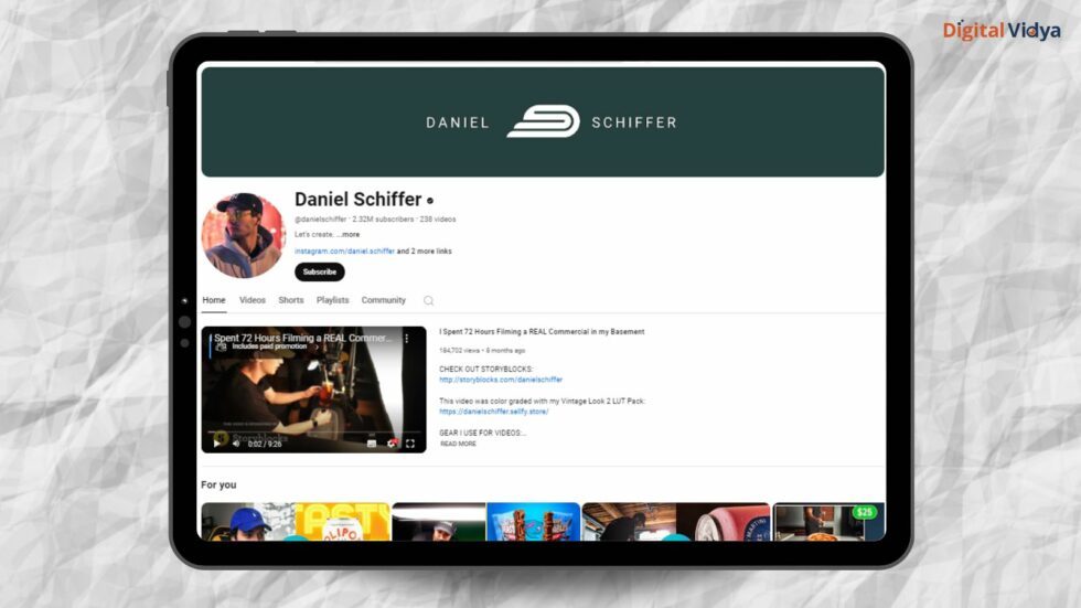 Daniel Schiffer is a dynamic visual storyteller. He has a YouTube channel with 2.31 million subscribers. Titled “Daniel Schiffer,” it serves as a hub for filmmakers and content creators seeking inspiration.